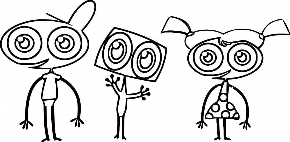 Discover this vibrant coloring page featuring an enchanting trio of unique characters, perfect for kids and adults alike! This printable coloring sheet showcases three whimsical figures that invite creativity: a tall, lanky character with a friendly demeanor, a square-shaped buddy with an expressive face, and a charming girl wearing a playful polka-dotted dress. Each figure boasts large, captivating eyes that are sure to spark joy as they are colored in.