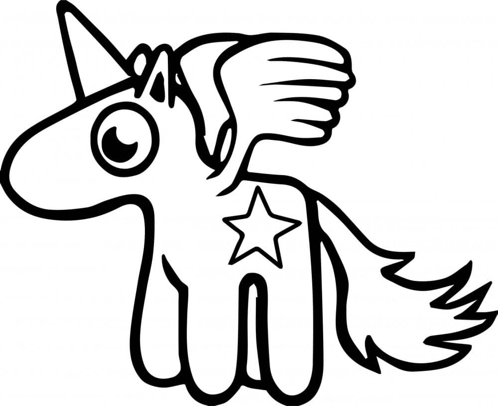 This delightful unicorn coloring page is expertly designed for creative souls of all ages. Featured on our printable coloring pages site, this whimsical illustration captures a cute unicorn with wings, radiating charm and playfulness. The unicorn stands proudly, showcasing a sparkling star on its side and a fanciful, flowing mane and tail. The bold outlines make it easy for both children and adults to color in, allowing for a fun, stress-relieving activity.
