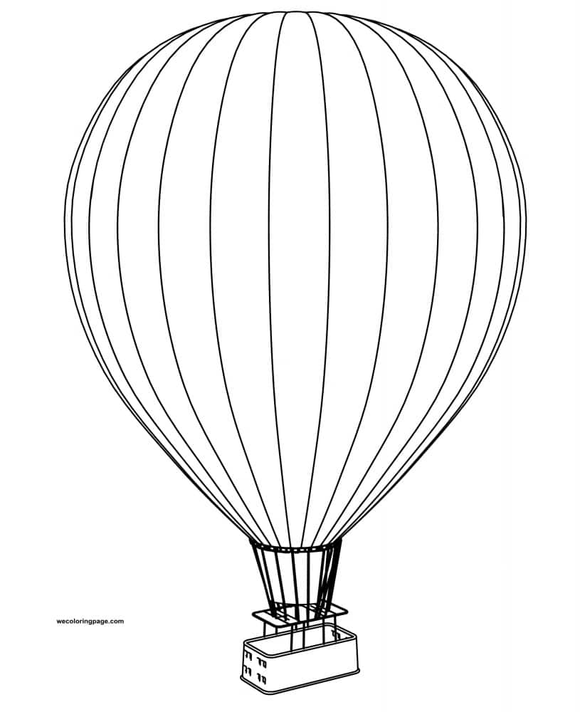This coloring page features a beautifully designed hot air balloon, perfect for both kids and adults looking to engage in a relaxing coloring activity. The balloon is illustrated with a series of vertical stripes, giving it a classic look that captures the essence of these magnificent flying vessels. The detailed basket below adds an extra layer of charm, providing an engaging opportunity for creativity.