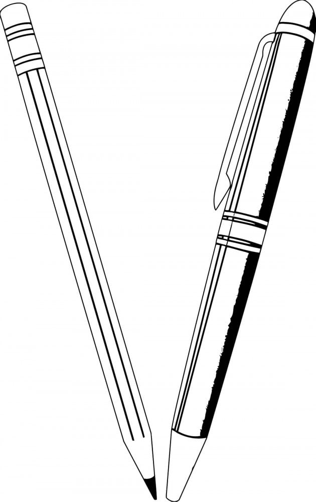 This printable coloring page features a simple yet engaging illustration of a pencil and a pen, positioned to form a V shape. The minimalist design emphasizes the outlines of both writing tools, making it an ideal choice for both kids and adults who enjoy artistic activities. The clear lines not only provide a great coloring opportunity but also stimulate creativity and fine motor skills.